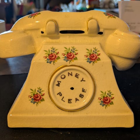Viktoria väggtelefon i trä. Klassisk modell med vev, lur och klockor monterade på en trälåda. Dekorerad frontlucka med kronmotiv. Passar som samlarobjekt eller inredningsdetalj i hem, kontor eller offentlig miljö med historiskt tema.