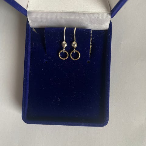 Örhängen, nickelvänlig, bly- och nickelfria i guldpläterat material. Modellen har en rund, flätad design med flera ringformade delar. Passar som vardags- eller festaccessoar. Levereras i ask enligt bild. Strl: 2 cm x 2,5 cm