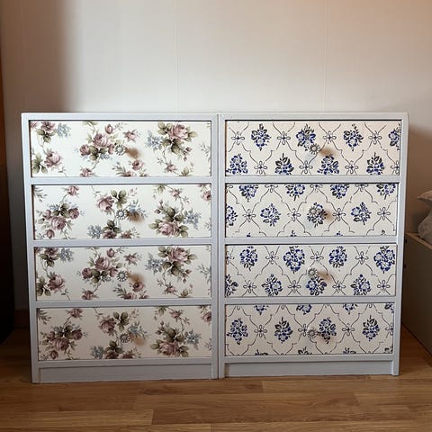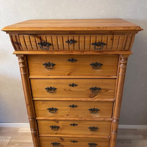 NymĂ„lad med country grey frĂ„n Annie Sloan förseglat med vitt vax som ger ett rustikt intryck! Beslagen Ă€r originalđż