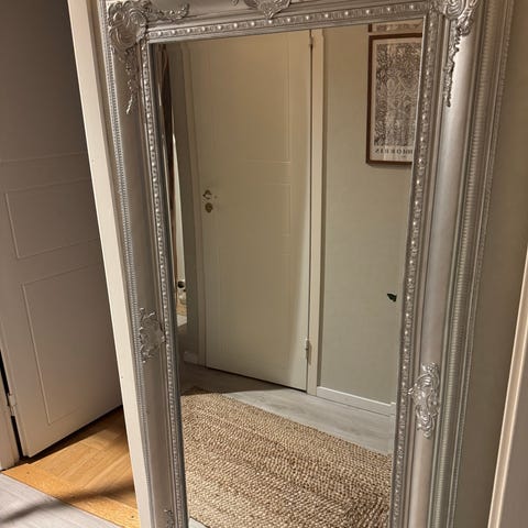 Perfekt för hallen eller sovrummet eller att hänga horisontellt över till exempel en byrå för att skapa mer rymd i rummet. Lätt spegel som endast väger 1,7 kg. Spegelns baksida har fästen för upphängning.