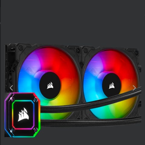 Corsair vattenkylning CPU-kylare i svart utförande. Består av pump/vattenblock med Corsair-logotyp samt radiator med anslutna slangar. Avsedd för montering på processor i stationär dator för vätskekylning. Passar som övrig datorkomponent i ett vattenkylt system. Exakta mått, sockelkompatibilitet och modellbeteckning framgår inte av informationen och kan behöva kontrolleras separat.