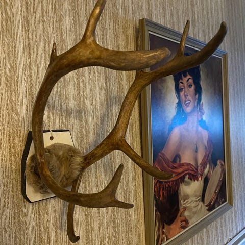 Unikt älghorn med två taggar på baksidan