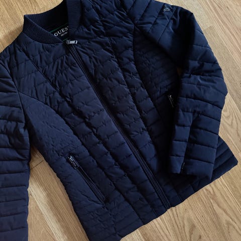 Svart lättviktsjacka med dragkedja framtill. Vadderad panel på bröstet och mjuka ärmar för extra komfort. Två sidofickor med dragkedja. Perfekt som övergångsjacka eller för vardagsbruk. I fint skick.