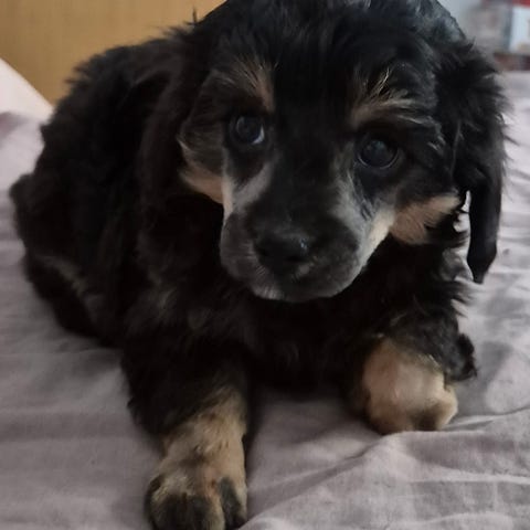 Thiago är färg svartbrun och är som mamman att han kommer ljusna med åldern och för varje klippning, men exakt hur ljus han kommer bli är svårt veta.