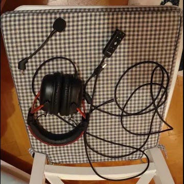 Corsair gamingheadset med mikrofon. Headsetet är svart och har en justerbar huvudbygel. Ansluts via kabel.