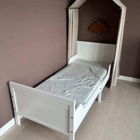 Sängbotten ingår, men inte madrass. Nypris 1500kr. 80x200cm (som störst). Fint skick, har mest stått i barnrum och använts väldigt sällan. Hämtas på Södermalm.