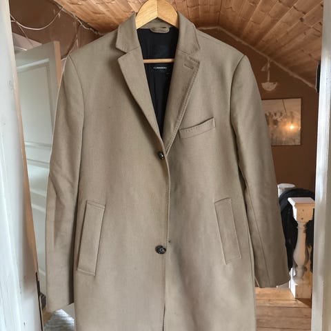 J. Lindeberg rock för herr i storlek 48. Rocken är beige och tillverkad i ull. Modellen har klassiskt slag, treknäppning framtill och passpoalerade framfickor samt bröstficka. Ärmarna har dekorativa knappar vid manschetten. Passar som ytterplagg vid kallare väder och fungerar både till vardag och mer formella tillfällen.