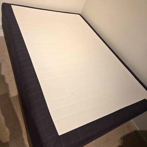Sängen är i gott skick, men på ena sidan är låset trasigt och tyget är sprucket (visas på sista bilden), och på andra sidan är allt bra.