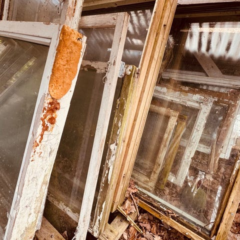 Fönster med träram i flera olika storlekar. Bortskänkt