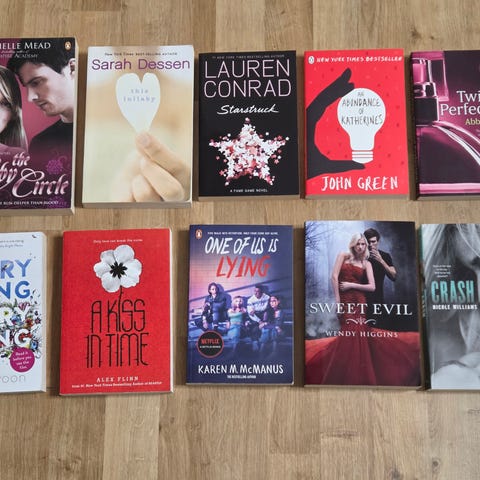 Böckerna är lästa och har små märke och har gulnat lite efter att ha stått i bokhyllan. Böckerna "Eligible", "wish you were here", "Nuts" & "The Party Crasher" har knäckta bokryggar. Utöver detta är i ett fint skick enligt mig. Djur- och rökfritt hem.