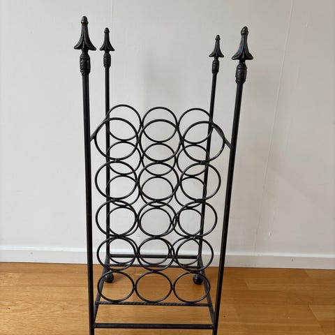 Stående/liggande vinställ för 6 st flaskor i rustikt träslag.