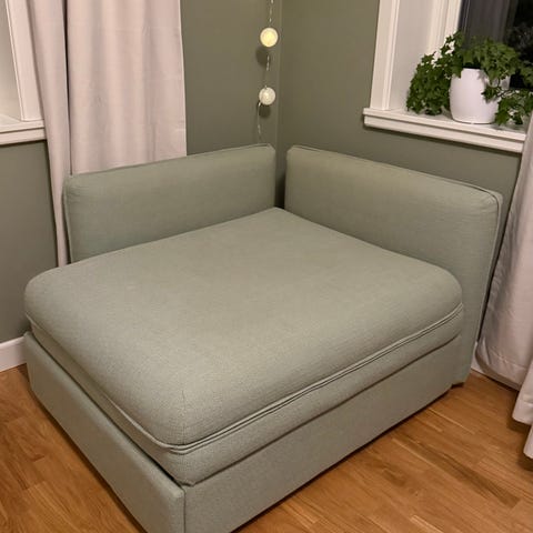 Enkel att bädda ut och bekväm både som soffa och säng.