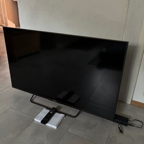TV:n är en plattmodell med rektangulär fot och tunn ram. TV-foten medföljer (separat manual).