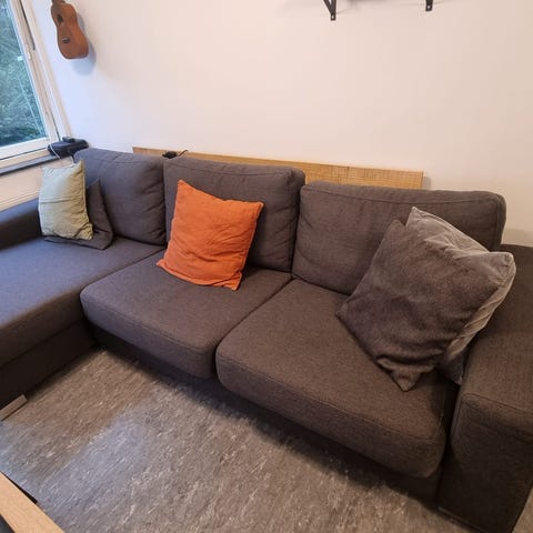 Beige hörnsoffa