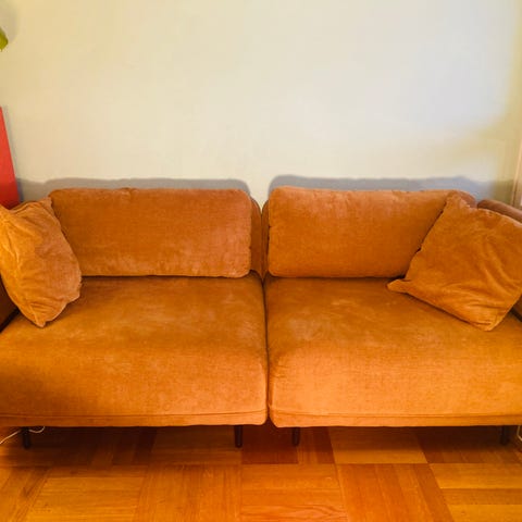 Teracottasoffa i sammet, 2,5-sits.