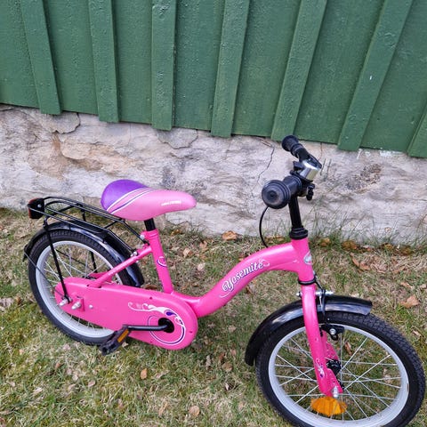 Stoy barncykel med 14" hjul i rosa färg. Cykeln har låg ram som underlättar på- och avstigning, svart sadel och svarta handtag. Utrustad med reflexer i hjulen och standardpedaler. Passar mindre barn som behöver en första trampcykel med stödfot.
