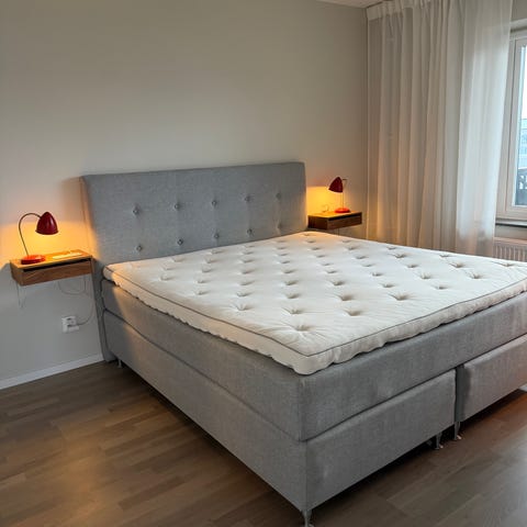 Vi säljer vår säng i nyskick från Ikea inköpt 2025. Sängen är Ikeas finaste kontinentalsäng i naturmaterial och komfortzoner. Den består av: