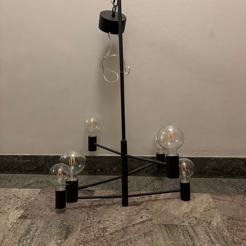 Svart taklampa i superfint skick. Ljuskällor ingår ej. Finns i centrala Kalmar.