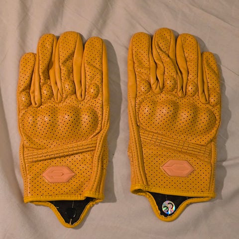 Motorcykelhandskar helt nya och oanvända med lapparna kvar. Bekväma och snygga mc handskar i äkta läder.