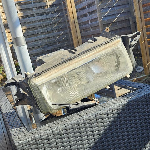 Strålkastare fram Volvo 940. Vänster strålkastare har trasigt glas.