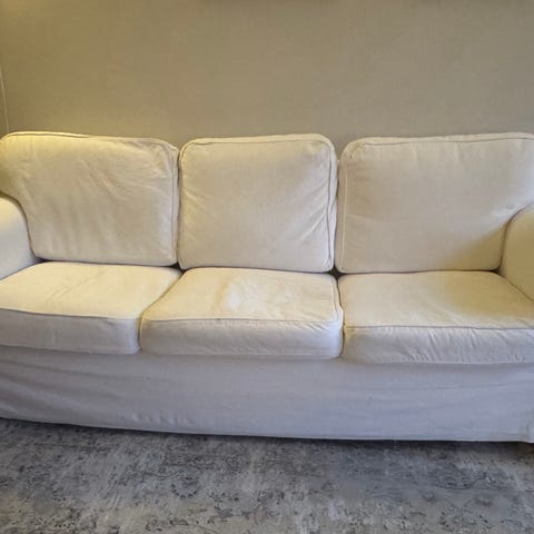 Kan inte säga exakt när den kan hämtas då jag väntar på ny. Någon gång i mitten på mars eller slutet på mars. Klädsel är fläckig och har rivmärke i hörnen efter katt. Ny klädsel kostar ca 3700. Bordet vill jag ha 200 för. Bordet i bra skick. Säger till vilken dag och måste då hämtas omgående. Kommer hjälpa till att dela på den om det inte redan är klart innan. Om man är intresserad är det i de skick den är!!! Som sagt klädsel dålig men soffa är i bra skick och stabil. Inga frågor eller anmärkningar eftersom den skänks bort. Tack