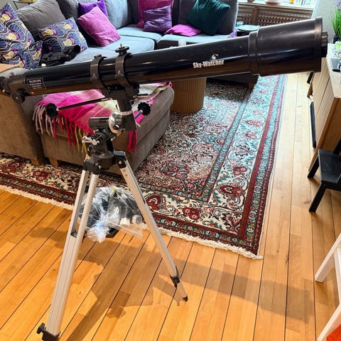 Dobsonteleskop inköpt 2023 från astrosweden.se. I nyskick, tyvärr endast använt ett fåtal gånger pga tidsbrist.