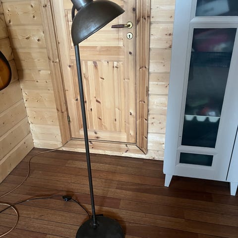 Mio golvlampa i svart färg. Lampan har en rund fot och en smal, rak stång med riktbar skärm. Passar som läsbelysning eller allmänbelysning i exempelvis vardagsrum eller sovrum. Ansluts med sladd till vägguttag. Ljuskälla ingår vanligtvis inte, utan väljs efter önskad ljusstyrka och sockeltyp som passar lampan.