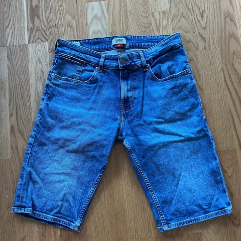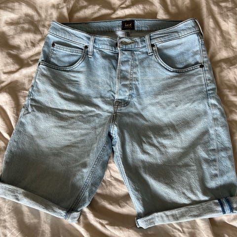 Vailent V Sh Ray shorts för herr i storlek M. Jeansshorts i blå bomull med klassisk femficksmodell, hällor för bälte och uppvikta benslut. Material enligt etikett: huvudsakligen bomull med en mindre del elastan för viss stretch. Passar som vardagsshorts under varmare väder.