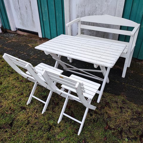 Charmiga utemöbler i renoveringsbehov