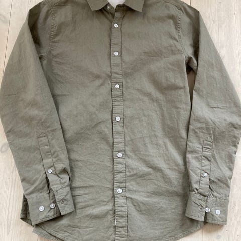 A Day's March skjorta för herr i storlek S. Skjortan är grön och tillverkad i bomull. Modellen har lång ärm, bröstficka och knappslå framtill samt knapp i kragsnibbarna. Passar som vardags- eller kontorsskjorta och kan bäras både instoppad och utanpå byxan.