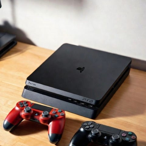 Sony PlayStation 4 Slim (PS4 Slim) konsol inklusive två handkontolller och laddstation.