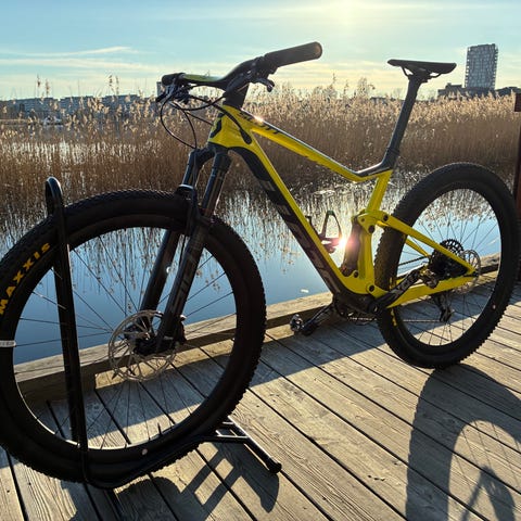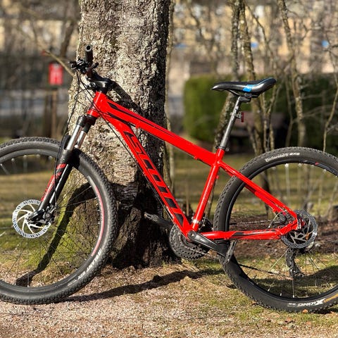 Crescent Stark S20, uppdaterad till en S10, ramstorlek M och 29" hjul (dt Swiss med dt Swiss 240s nav). Cykeln har en sid wc dämpare fram och uppdaterad med en Fox float factory dämpare bak, xtr bromsar och bakväxel som syns på bilderna. Färgen är matt orange med svarta detaljer.