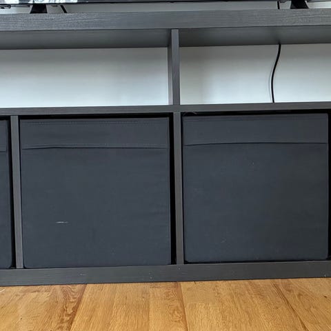 Kallax svartbrun 1x4: 200 kr inkl tyglådor (nypris 800 kr)