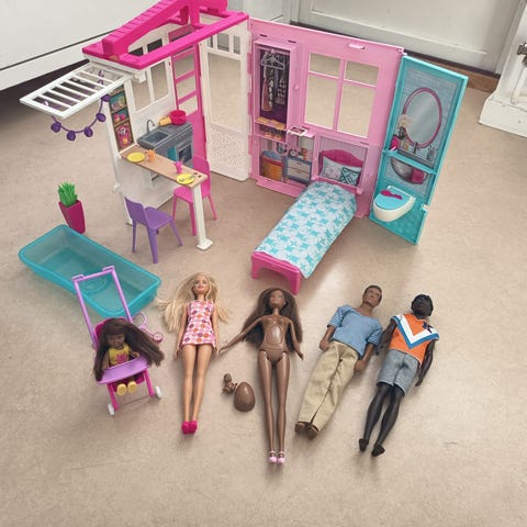 Nästan komplett set. Barbiedockan i bra skick.
