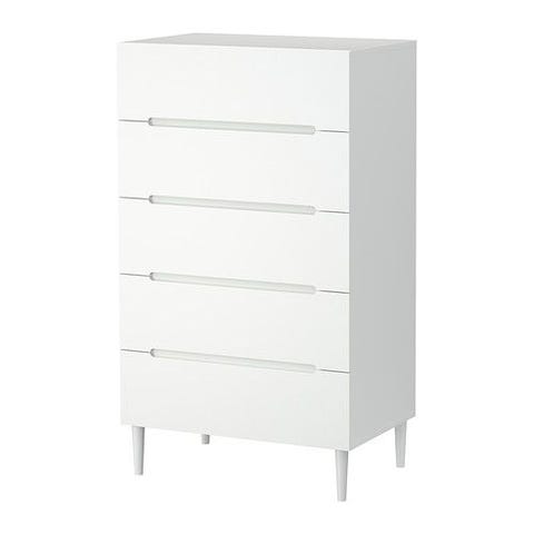 Byrån är i mycket gott skick. De översta och nedersta lådorna behöver justeras något för att löpa helt perfekt (se bild 2) – enkelt fix för den händige. I övrigt är den i mycket fint skick.