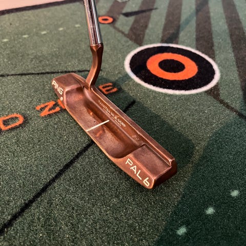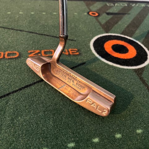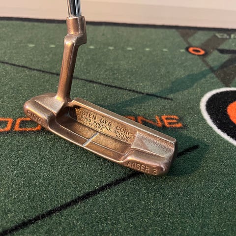 Ping Shea putter med tungsten-viktning. Klassisk bladliknande putterhuvud med tydlig siktslinje och frästa träffytor. Skaft i metall och grepp anpassat för golf. Passar för användning på green vid puttning i golfspel.