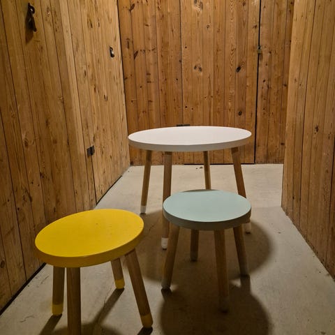 IKEA barnbord med tre pallar trä