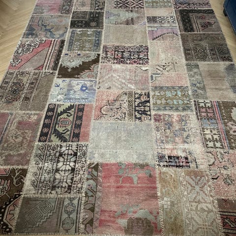 Röd patchworkmatta 250 x 177 cm.
