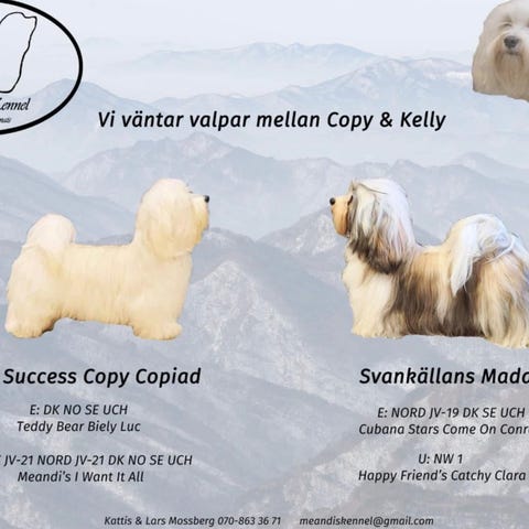 Båda föräldrarna har stamtavlor registrerade i SKK, Svenska Kennelklubben och är friska, sociala och mycket glada individer. Mamman är Bichon Havanais och pappan är Toy pudel.