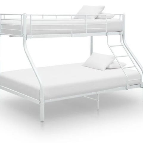 Denna våningssäng i vit metall är stilren och passar bra i ett mindre rum.