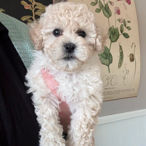 Hon är 5 månader och till fullo vaccinerad, regelbundet avmaskad och rumsren.