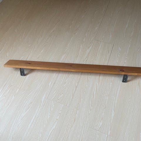 Vägghylla nybetsad i mörk ek (Herdins betslack) med snidade konsoler.