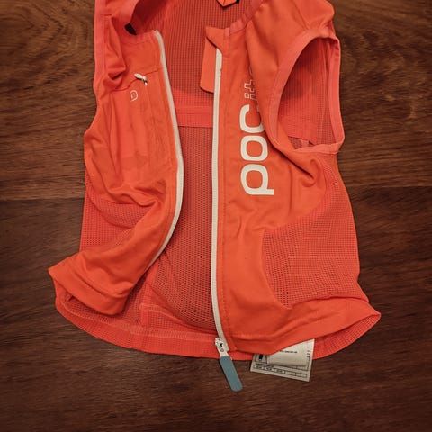 POCito skyddsväst för barn i orange färg. Tillverkad i lätt och ventilerande material för god rörelsefrihet och komfort under aktivitet. Storlek large (jr)
