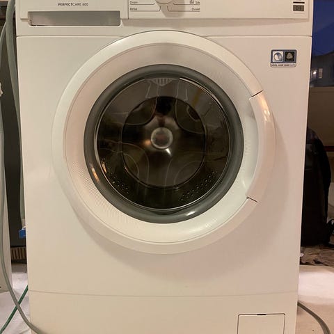 Begagnad, fungerar väldigt bra men låter från trumlager så det behövs bytas.