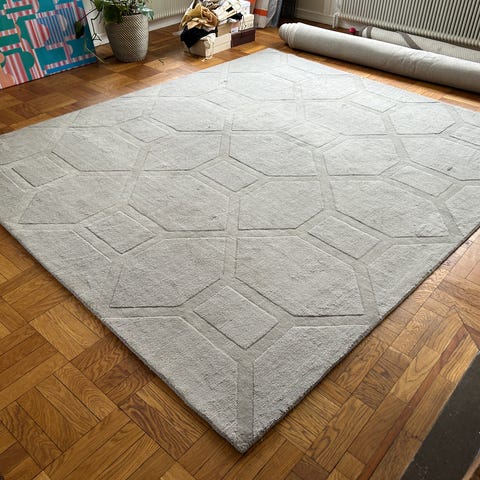 Layered ullmatta 350x250 cm i flerfärgad design med abstrakt mönster. Passar som större vardagsrumsmatta och ger ett mjukt underlag på golvet. Rektangulär form med varierande nyanser som kan kombineras med olika inredningsstilar. Kemtvättad nyligen, djur och rökfritt hem, och i bra skick.