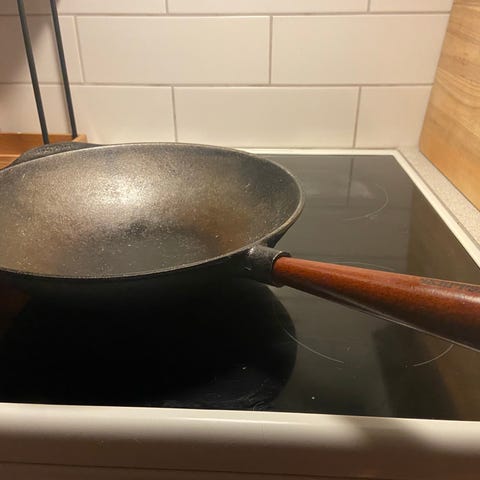 Djup stekpanna i kolstål, traktörpanna, wok från De Buyer.