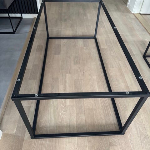 Soffbord i smide med vitlaserad skiva. Handgjord design. Inköpt på Akeba Norrtälje sent 1990 tal. Lite retro. Mkt gott skick. Skivan kan behöva lite kärlek. Möbel som blir vackrare med åren.
