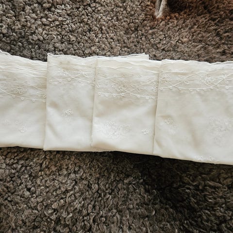 Välbevarade lakan, ca 80 år gamla, se bild. Tvättade och manglade. Vissa med spets och monogram. Örngott med veckade band. Säljes i befintligt skick. Endast avhämtning i Norrahammar eller Jönköping. Betalning med Swish.