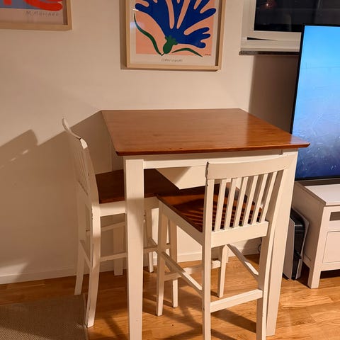 Nypris: Barbord- ca 1500 kr. Barstolar- 799 kr/st (med mitt säljpris blir stolarna och 1/3 av barbordet gratis så inget tramsande tack).