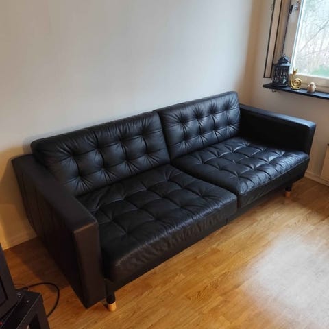 En 2-sits svart skinnsoffa från ikea. Sparsamt använd.